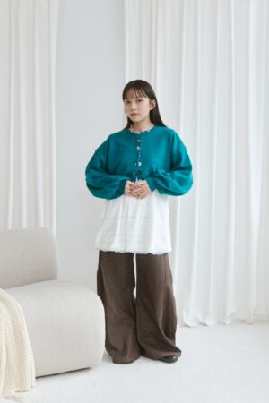 nomo ꕤ 柔軟纏繞!針織澎袖短版外套 藍綠