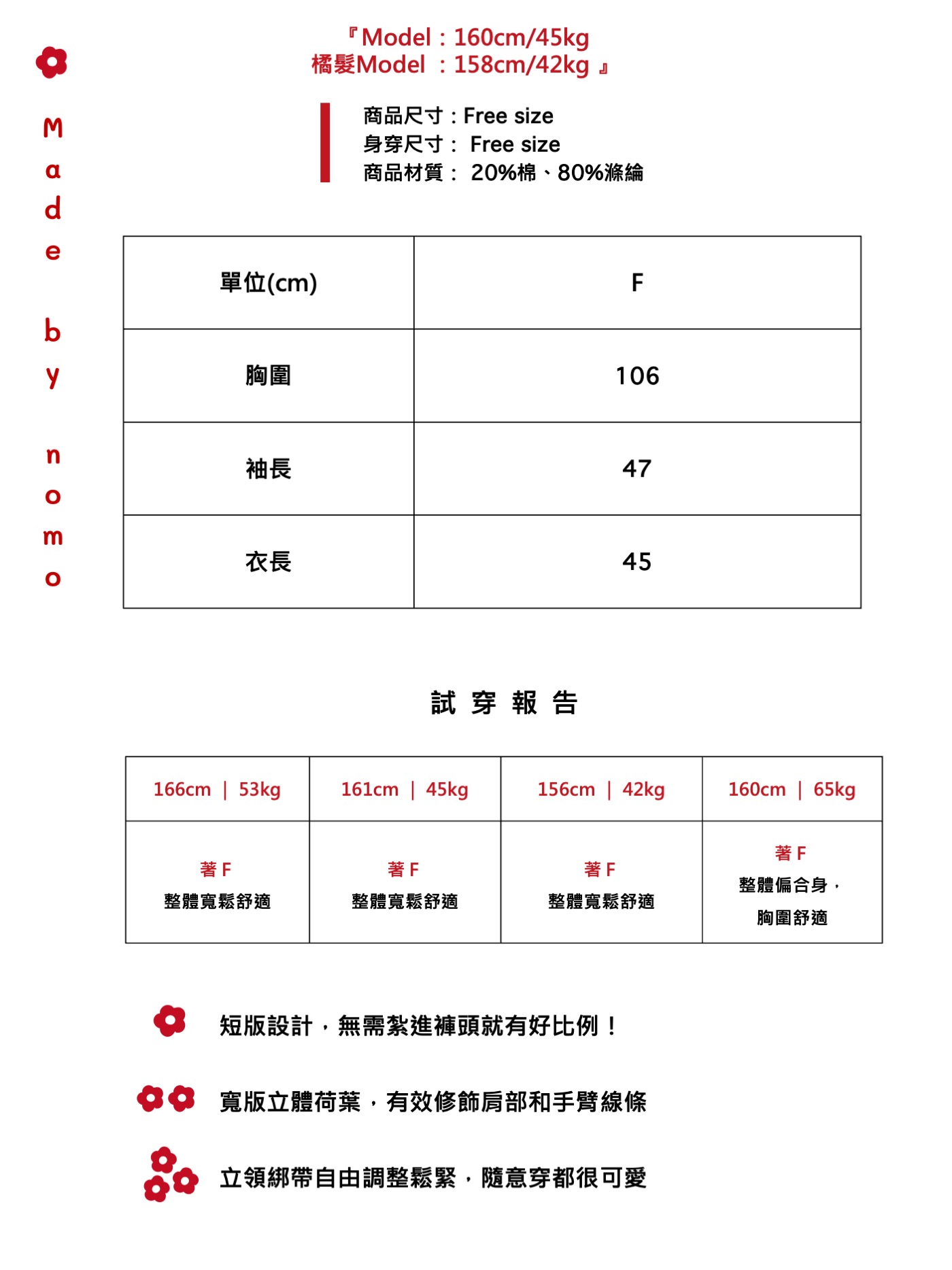 首頁 🧵nomo出品|Made by nomo nomo ꕤ 層影翻頁!立體荷葉短版襯衫 白 特價 🔍 nomo ꕤ 層影翻頁!立體荷葉短版襯衫 白NT$720 原始價格:NT$720。NT$684目前價格:NT$684。 ✿ 三個工作天內出貨完成(不包含例假日)✿ 尚有庫存 nomo ꕤ 層影翻頁!立體荷葉短版襯衫 白 數量 加入購物車 分類: 🧵nomo出品|Made by nomo, ✿ 現貨秒出, New in, 全部商品 | SHOP ALL, 上身 | TOP 描述 相關商品 (現貨) 限量韓國選物!柔軟棉花糖針織帽 四色售 NT$550 選擇規格 此產品有多種款式。 可在產品頁面選擇選項 售罄風鳥草!珍珠花朵項鍊 NT$380 選擇規格 此產品有多種款式。 可在產品頁面選擇選項 售罄飾品支線❀獨家設計!不規則金屬耳針式耳環(korea) NT$380 查看內容 售罄(現貨) 限量韓國選物!925純銀 對你微笑的太陽花戒指 NT$450 查看內容